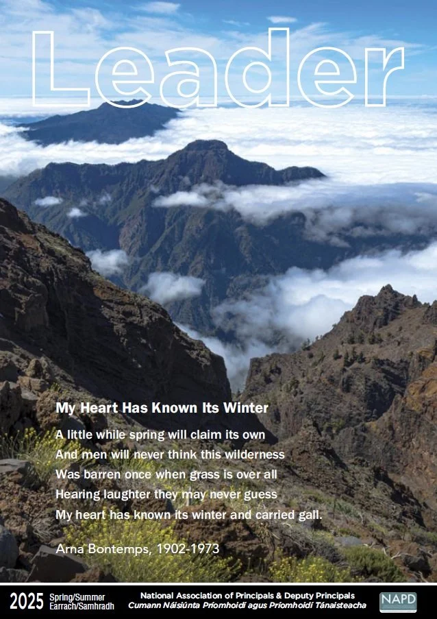 Leader’s function is to open a window to the world of education in Ireland and beyond. It seeks to inform, challenge, and engage members. It’s maybe not something to read from start to finish but rather dip in and out of as time and mood allows.